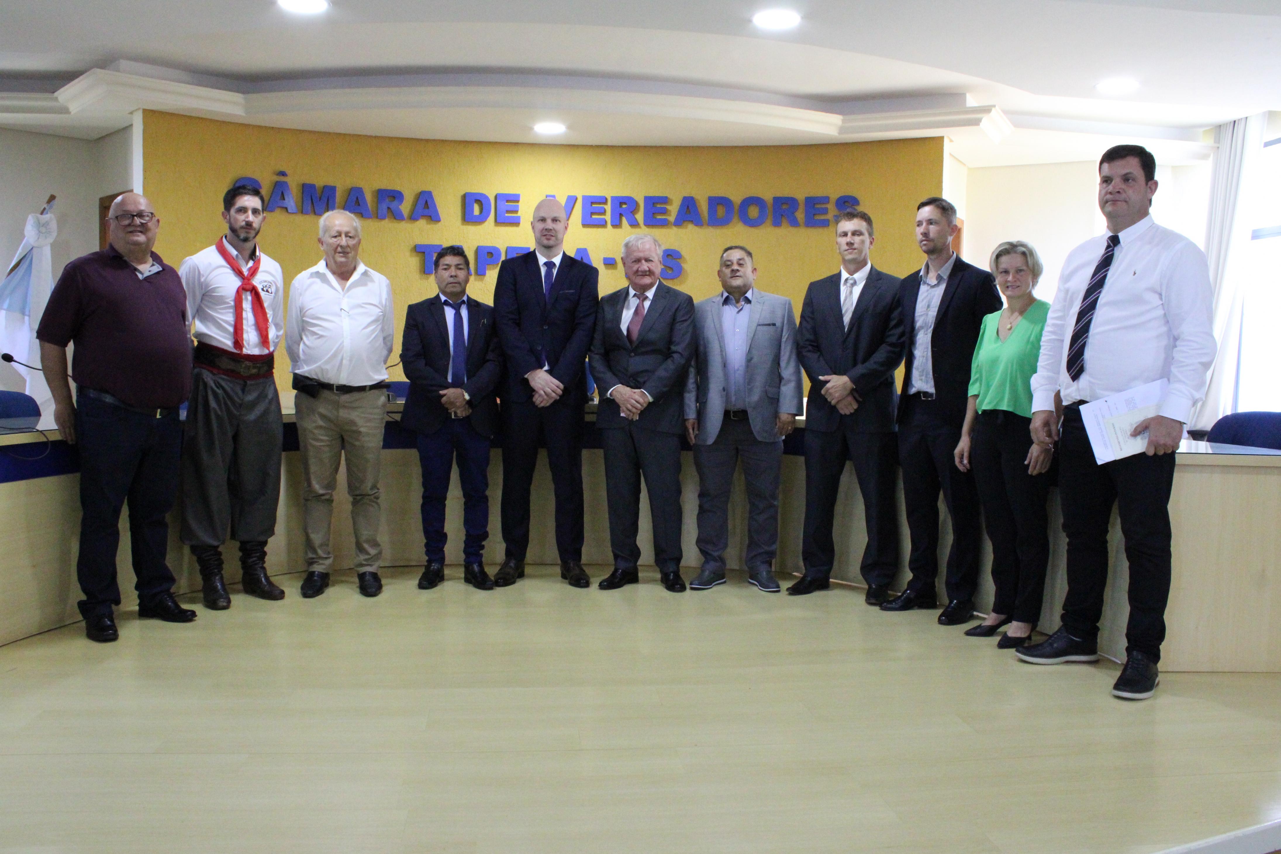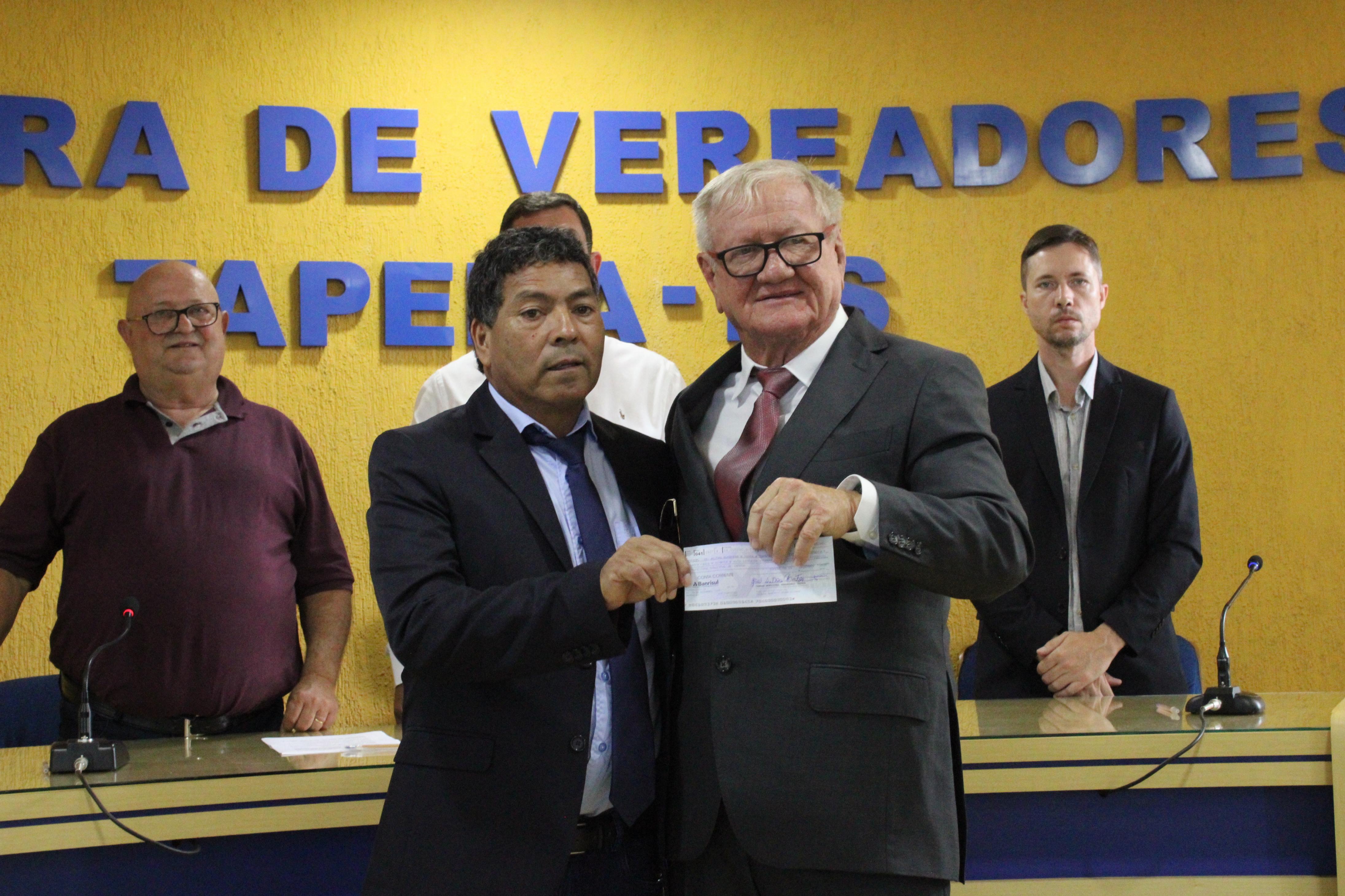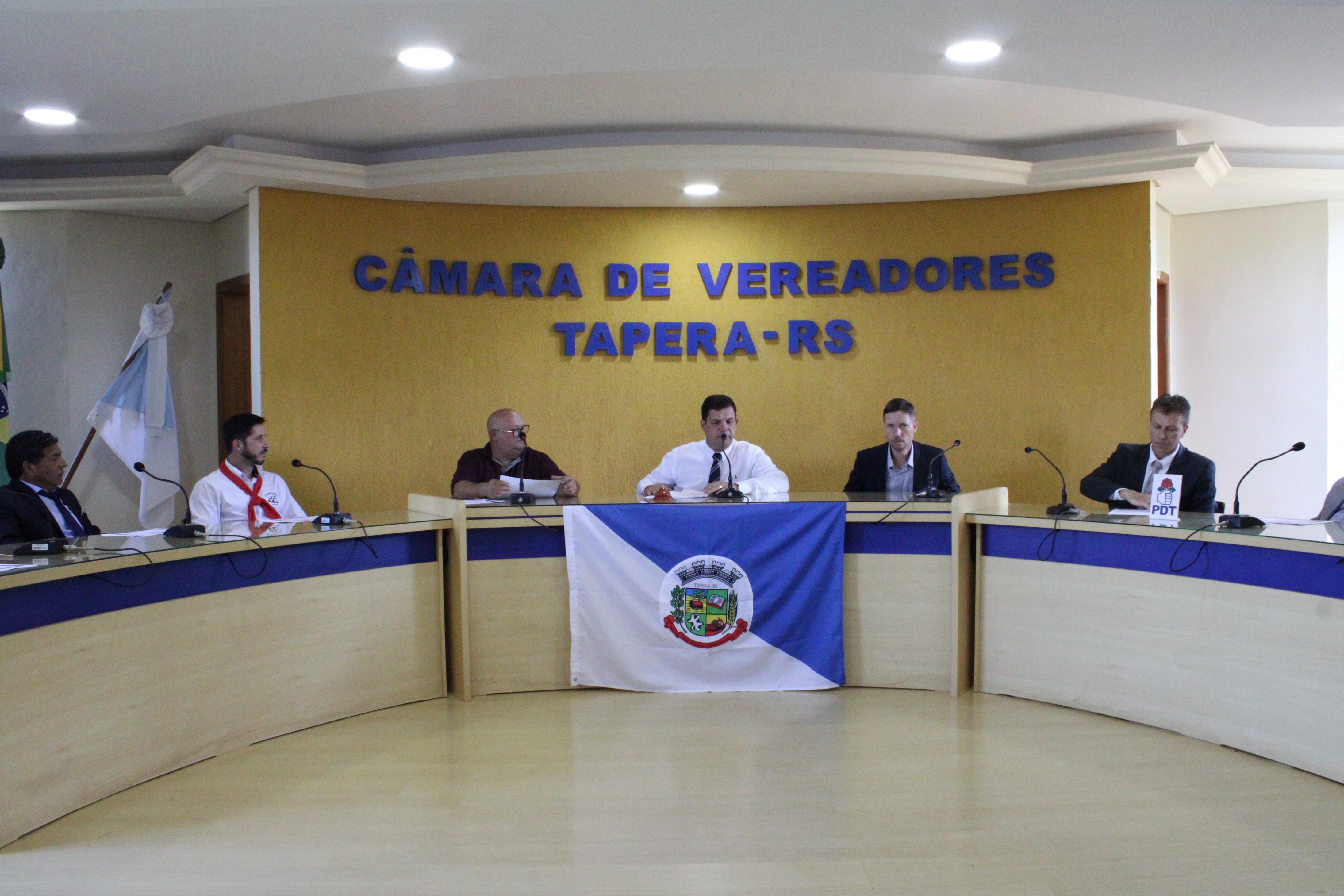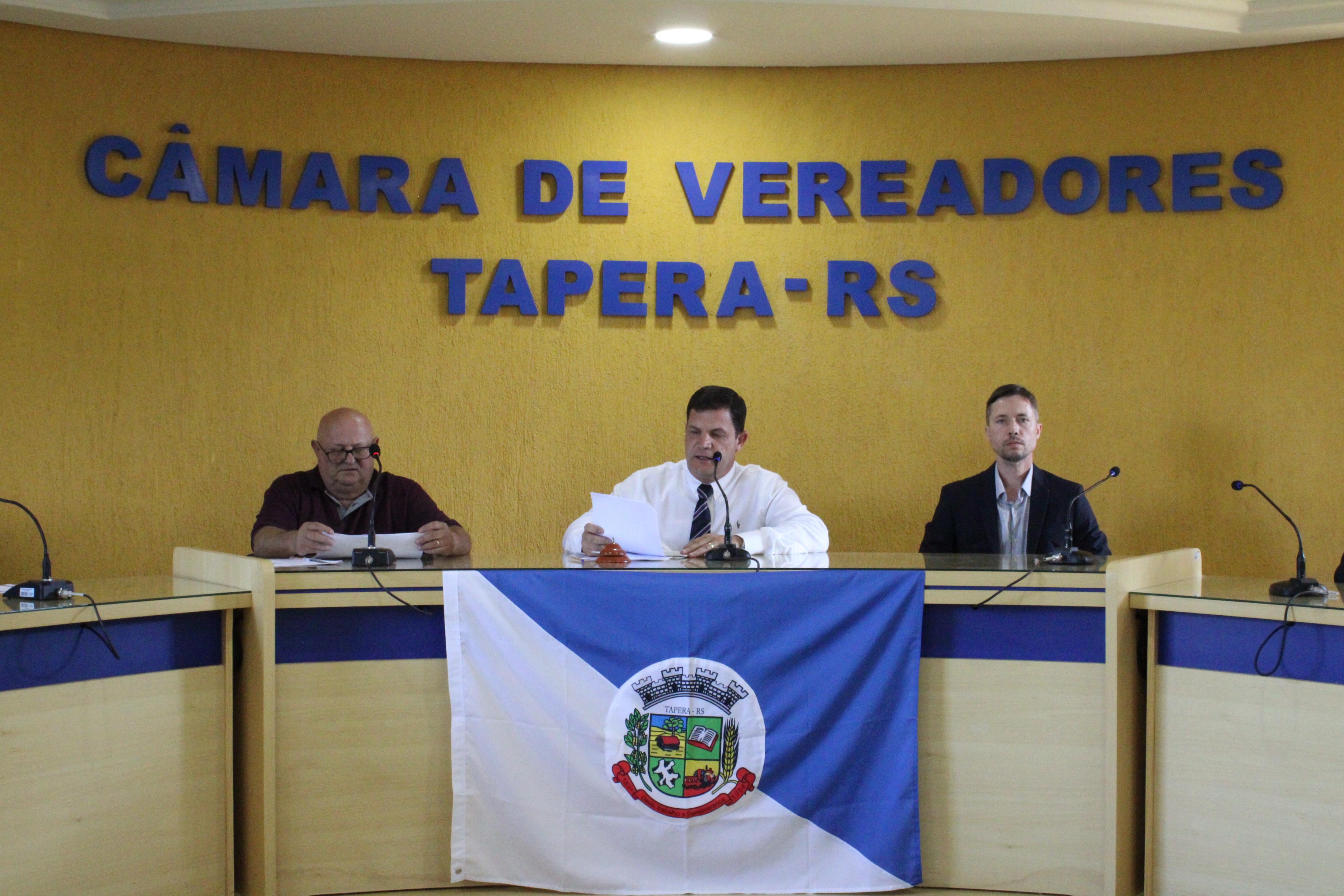 Na manhã do dia 31 de dezembro de 2024, foi realizada na Câmara de Vereadores de Tapera a cerimônia de posse dos eleitos, a qual contou com a participação de um grande público, composto por autoridades e comunidade taperense. O evento iniciou com os novos vereadores tomando seus lugares, prestando juramento e recebendo seus diplomas, depois realizaram a eleição da mesa diretora para 2025 que ficou definida da seguinte forma: Presidente: DANIEL GARDIN (PP) Vice-presidente: AURÉLIO VICARI (PDT) 1º Secretário: LEONARDO SCHERER (PP) 2º Secretário: JACKSON LAUXEN (PDT) Em seguida, um vereador de cada partido recepcionaram e adentraram com o prefeito e o vice-prefeito ao plenário. O vice-prefeito, Márcio Paulus, iniciou as falas e na sequencia o prefeito, Osvaldo Henrich Filho, ambos agradecendo a comunidade taperense e desejando um excelente mandato do Executivo em parceria com o Legislativo, sempre pensando no bem comum e no futuro de Tapera. Durante o evento, o antigo presidente da Câmara e Vereadores e vereador reeleito, Joel Alves do Santos, repassou, de forma simbólica, um cheque de R$ 1.224.000,00 ao prefeito, Osvaldo Henrich Filho, relativo à sobra de 2024 do Legislativo. Por fim, o atual presidente da Câmara de Vereadores, Daniel Gardin, encerrou a solenidade.