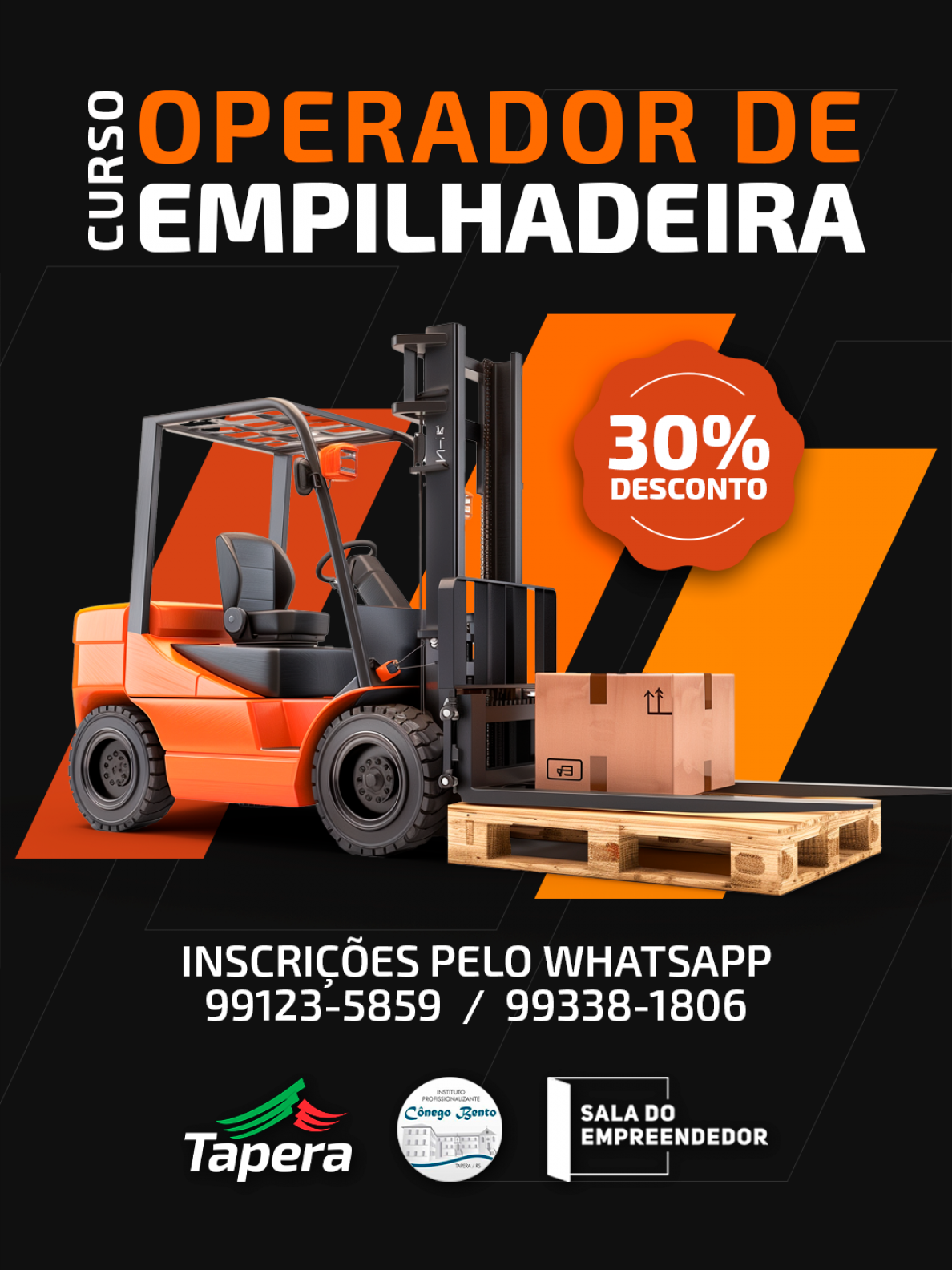 O Instituto Cônego Bento está com inscrições abertas para o Curso de Operador de Empilhadeira. As aulas serão realizadas nas quintas-feiras à noite, com a parte teórica no Instituto e as atividades práticas na Cotrisoja. O curso terá 5 encontros e um investimento de R$ 700,00 por aluno. Serão oferecidas 5 vagas com 30% de desconto. O pagamento pode ser parcelado em 3 vezes e realizado via Pix. Interessados devem fazer a inscrição pelo WhatsApp 54 99123-5859 ou 54 99338-1806. A data de início será informada assim que o curso atingir o número mínimo de 10 inscritos.