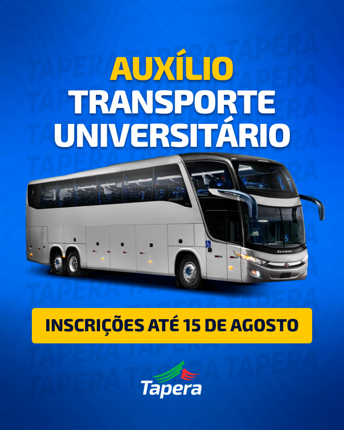O auxílio, é destinado para estudantes matriculados e cursando o Ensino Superior em Instituições públicas ou privadas e estudantes de curso de nível profissional técnico (médio e superior) que necessitem auxílio de recursos para deslocamento intermunicipal, de Tapera para universidades em outros municípios da região.