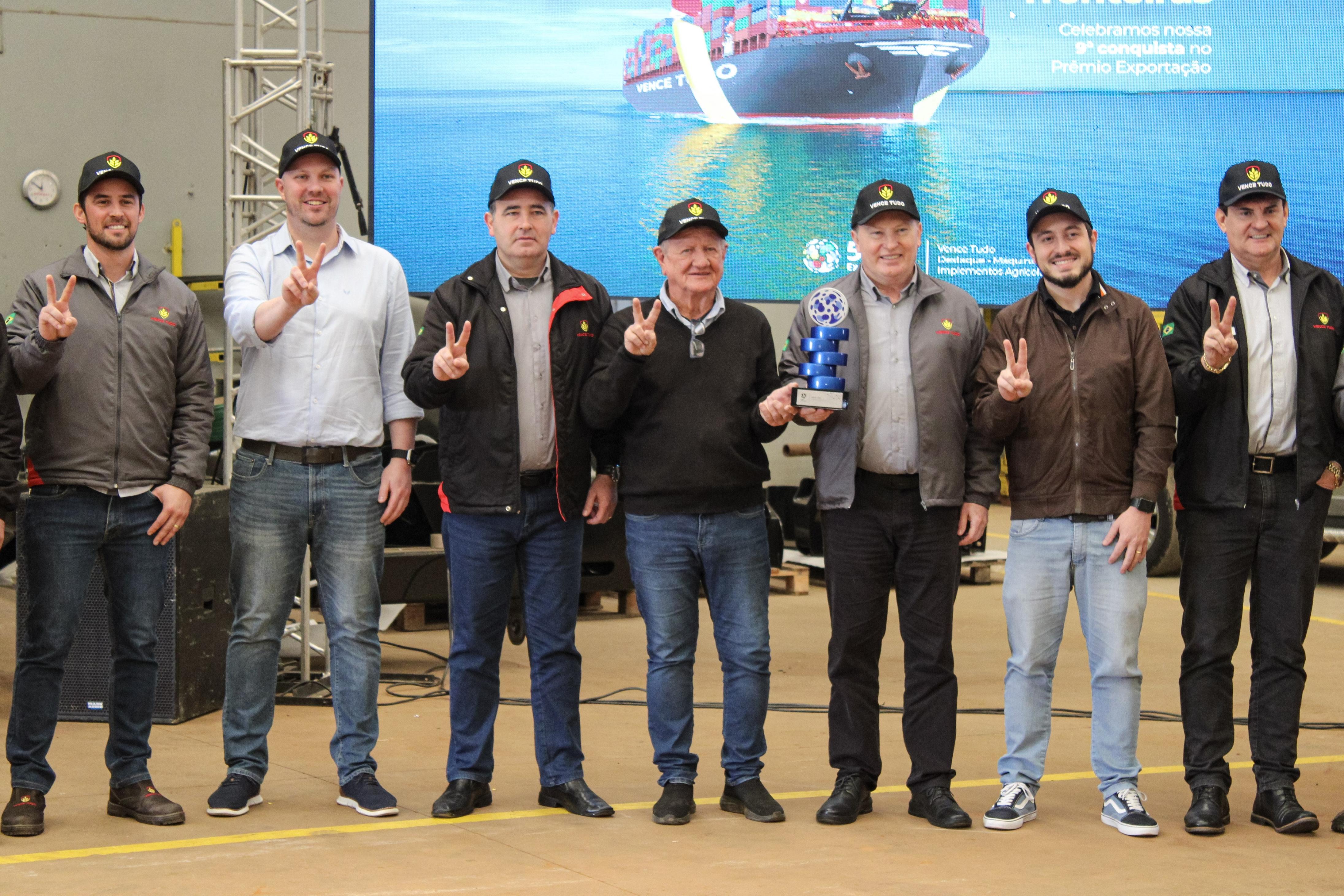 O encontro celebrou a conquista do Prêmio Exportação RS, na categoria Máquinas e Implementos Agrícolas, recebido pela empresa pela 9ª vez consecutiva. O ato contou ainda com a presença do Diretor-Presidente, Marcos Luis Lauxen, da equipe administrativa e de colaboradores da empresa.