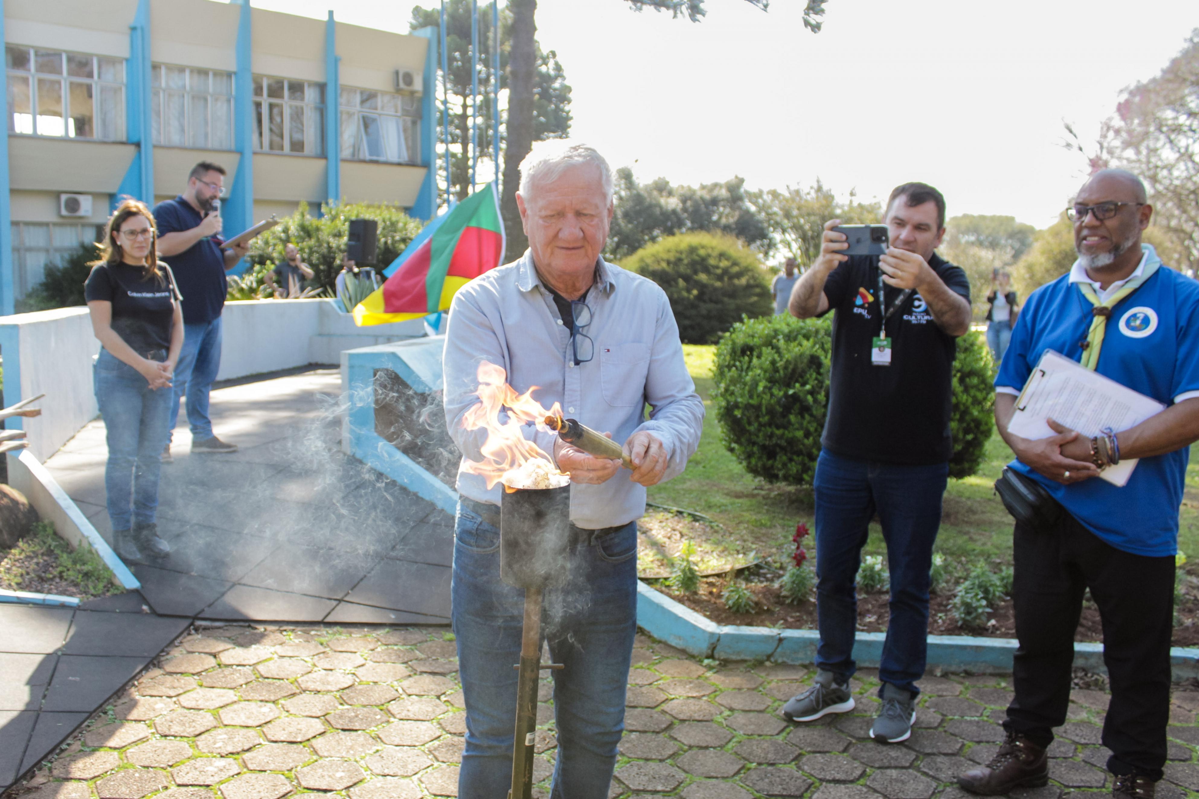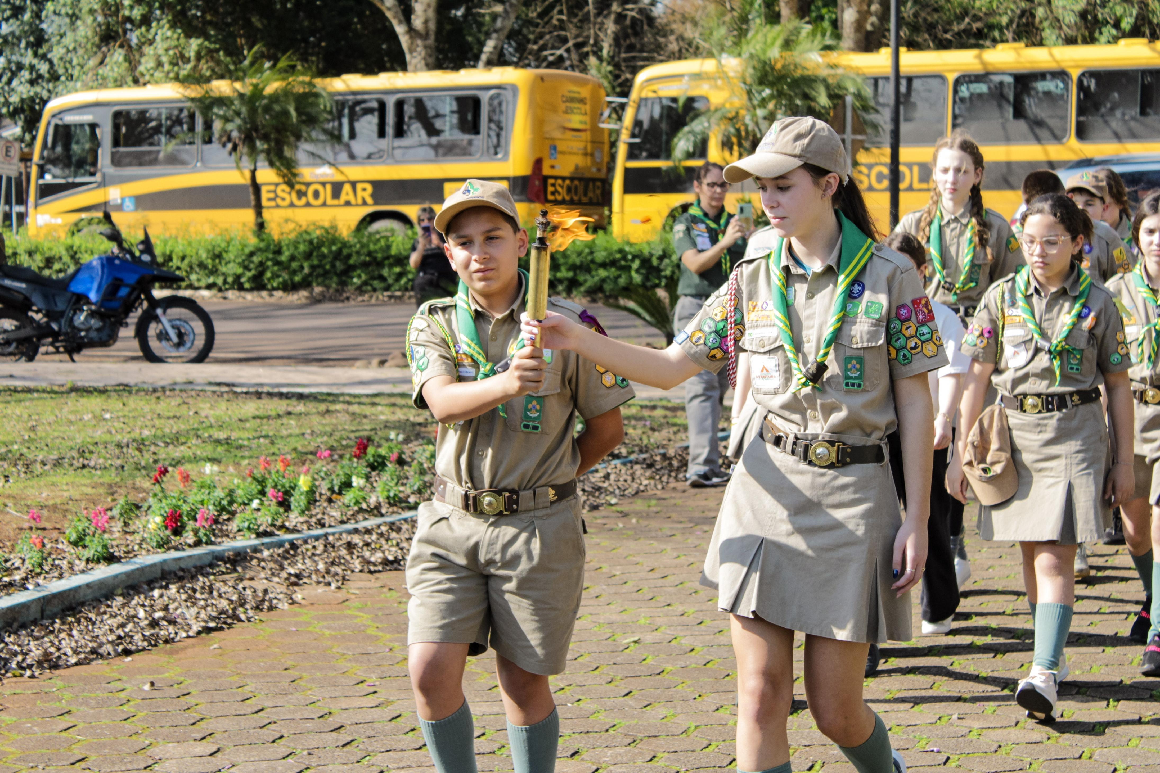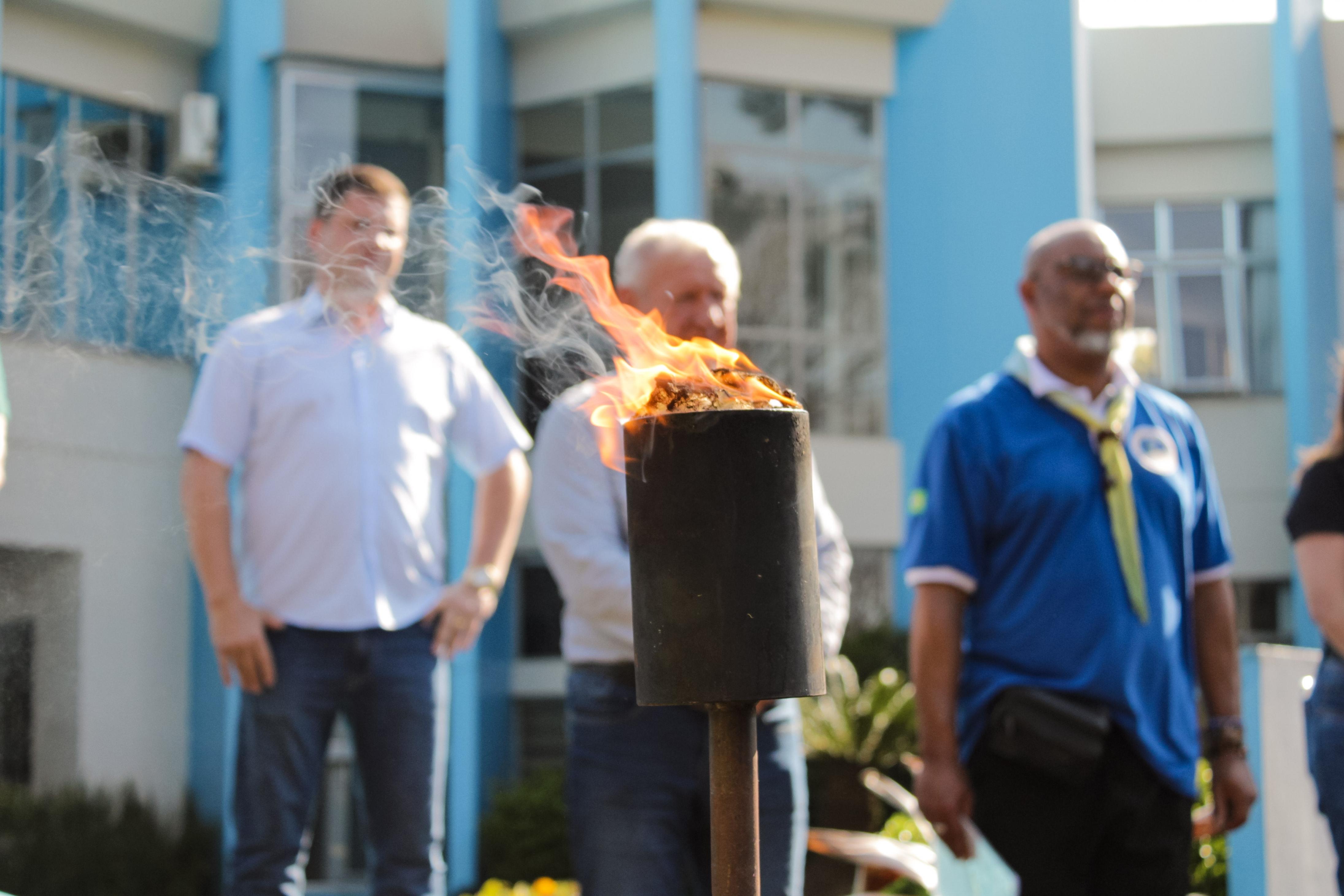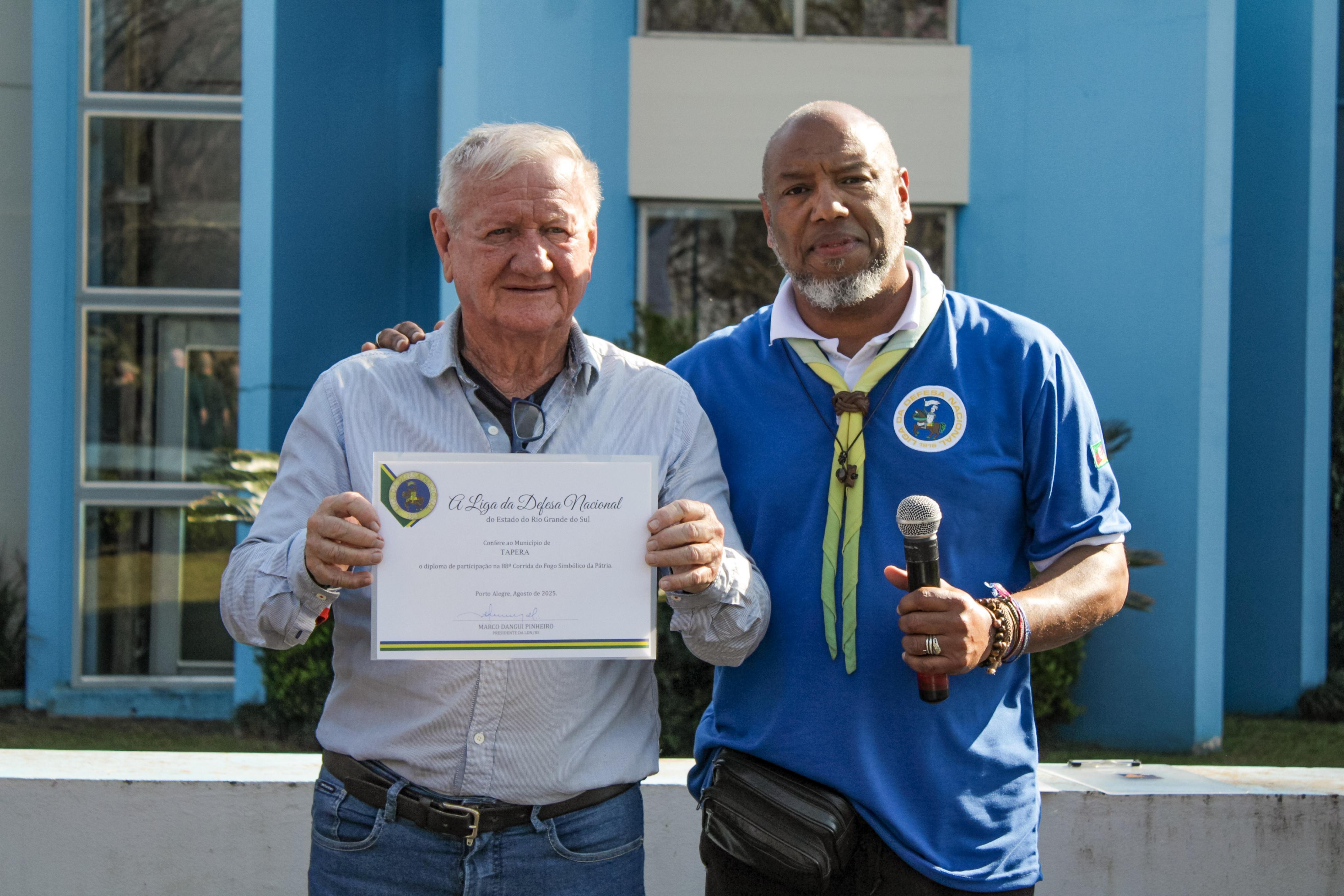 Na tarde desta sexta-feira, 22/08, o Prefeito Osvaldo Henrich Filho recebeu, das mãos dos escoteiros e do Diretor Institucional da Liga da Defesa Nacional do Rio Grande do Sul, Gilmar Sousa Chagas, a centelha e o diploma de participação na 88ª Corrida do Fogo Simbólico da Pátria. A chama permanecerá em Tapera até o encerramento da Semana da Pátria.