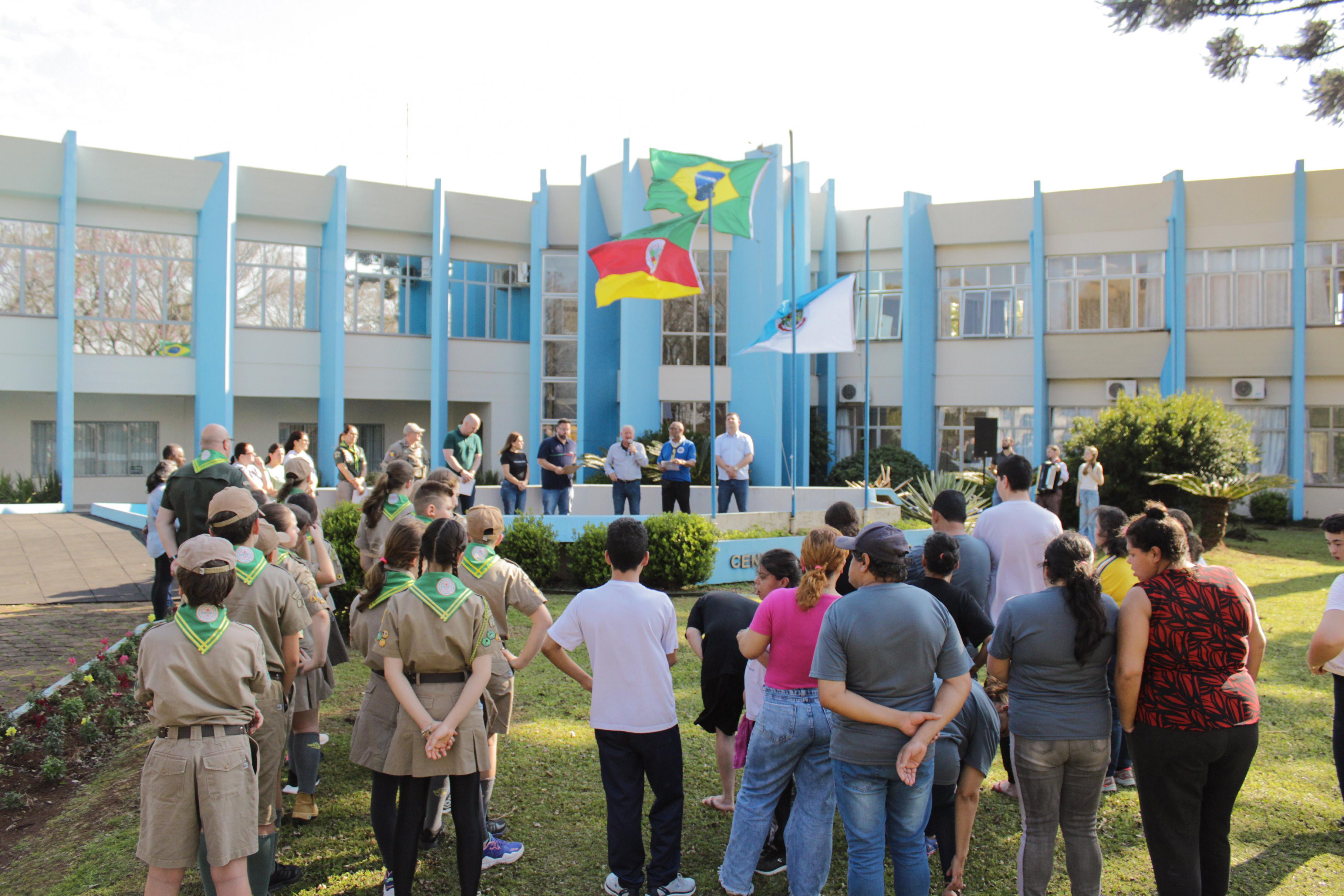 A cerimônia contou com a presença da Polícia Rodoviária Estadual, Polícia Militar, Grupo de Escoteiros Cônego Bento, secretários municipais, alunos da APAE e diversas autoridades locais.