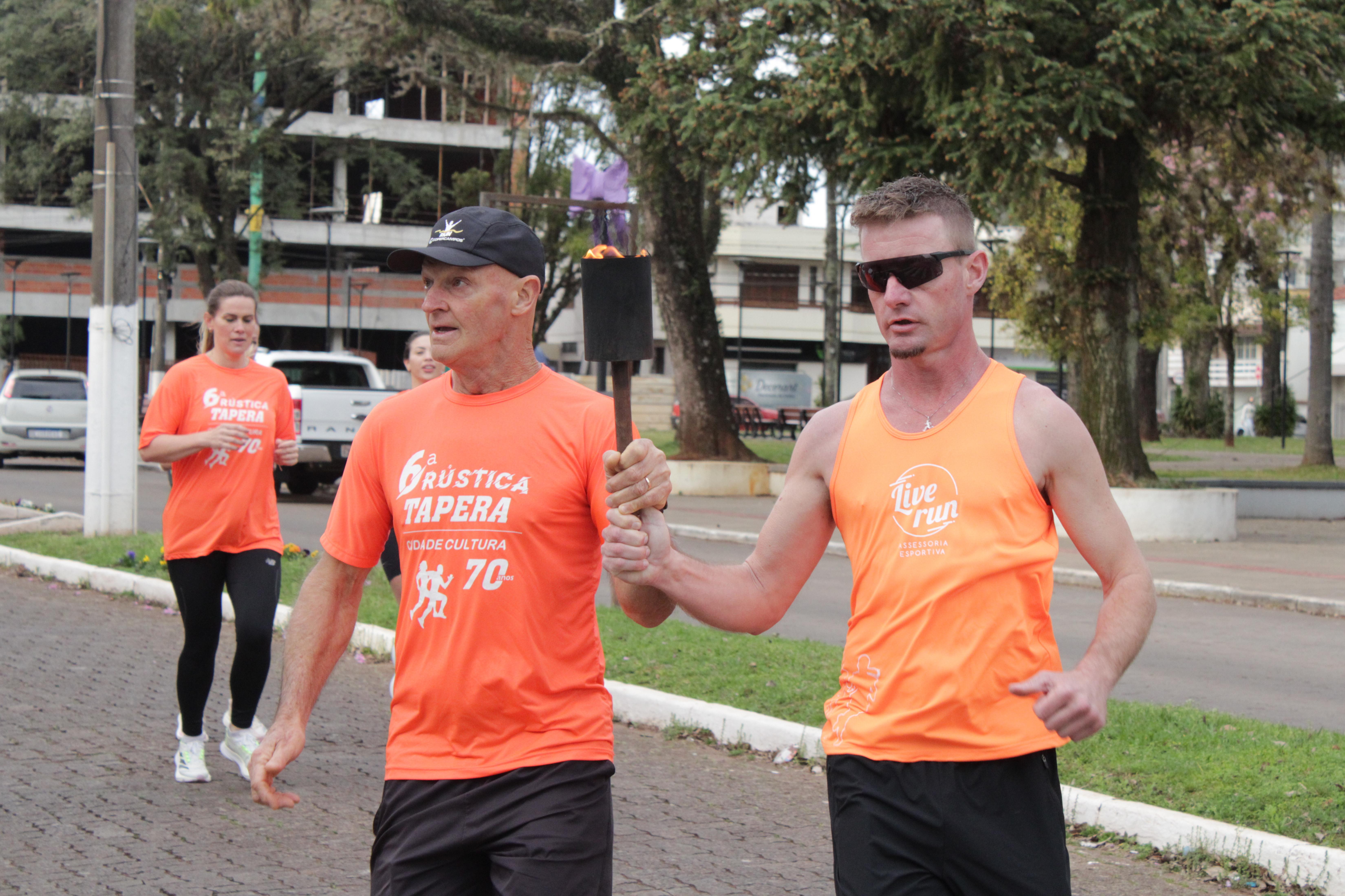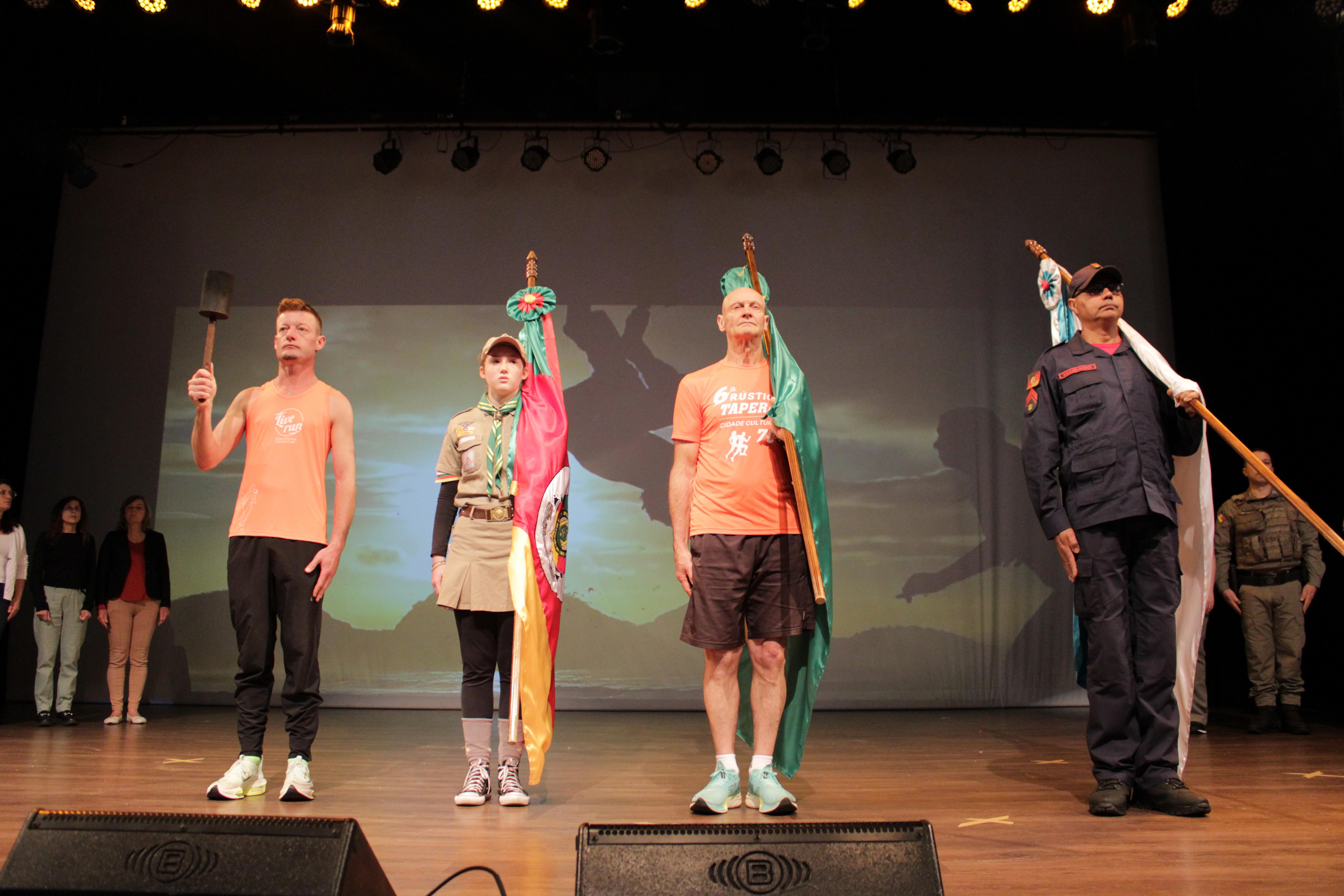 A cerimônia teve sequência com a entrada das bandeiras do Brasil, Rio Grande do Sul e Tapera, conduzidas por um atleta do Grupo de Corrida de Tapera, um escoteiro e um policial, seguida pela execução do Hino Nacional.