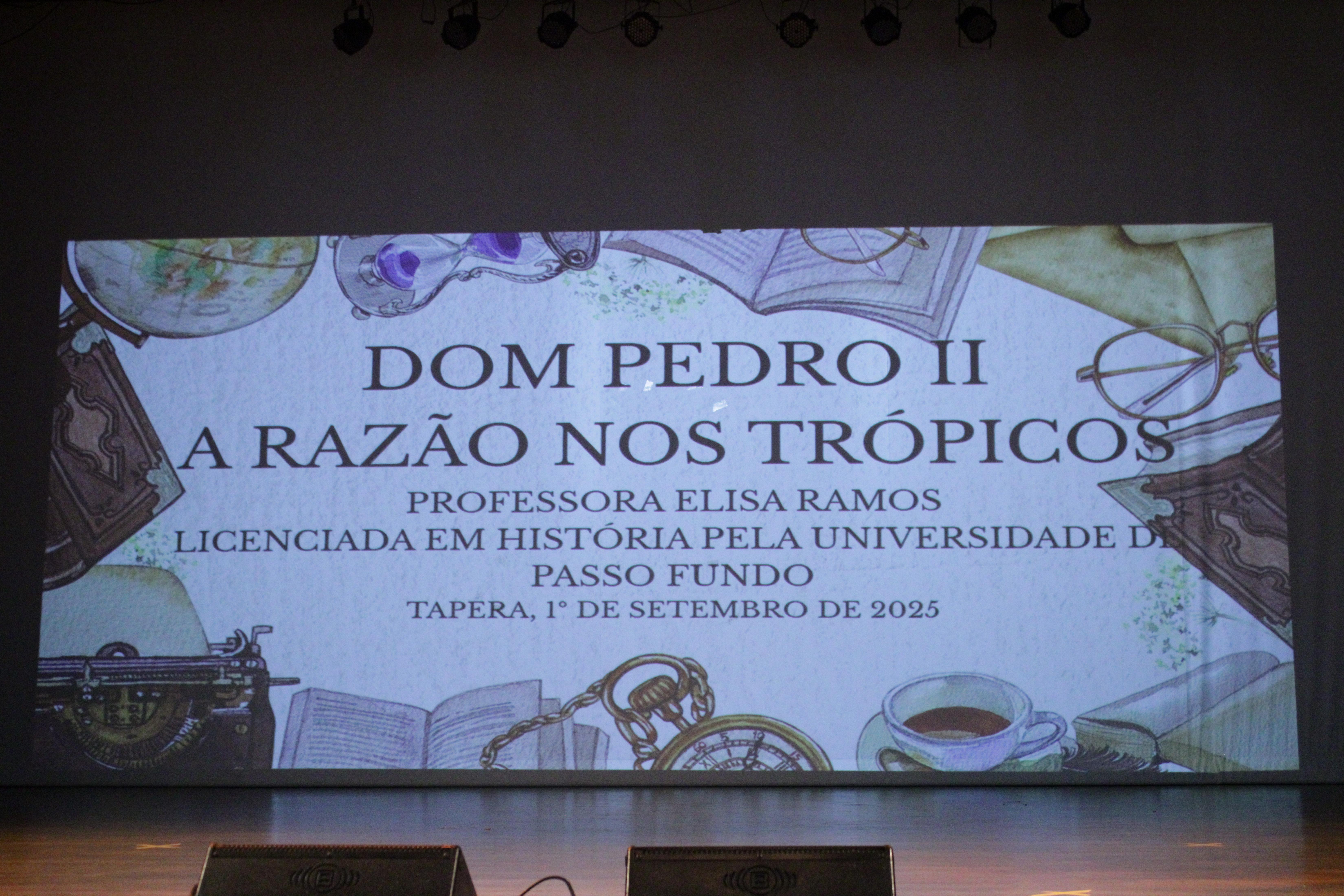 A professora de História, Elisa Ramos, apresentou uma explanação sobre D. Pedro II, tema nacional da Semana da Pátria deste ano. O público também acompanhou a apresentação do ballet da Escola Pequenos Brilhantes e uma encenação do Grupo Municipal de Teatro, que abordou a temática municipal escolhida para 2025: “Raízes, identidade e legado das etnias de nossa Terra”.