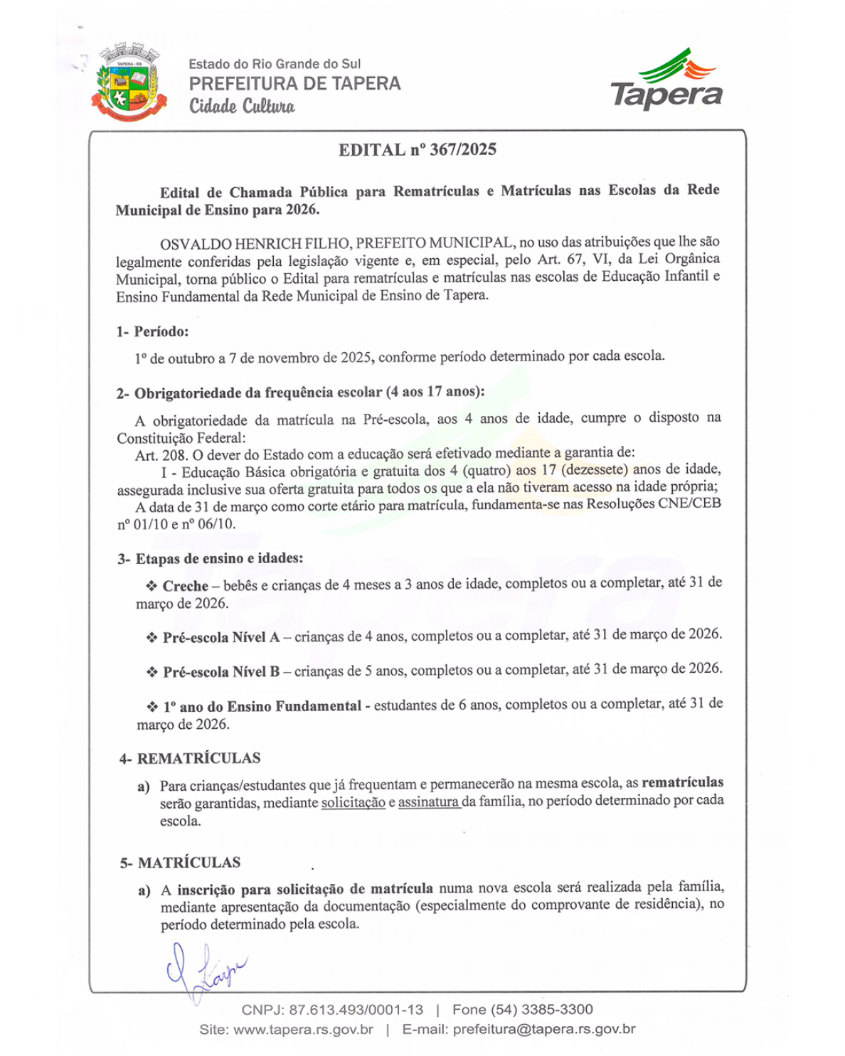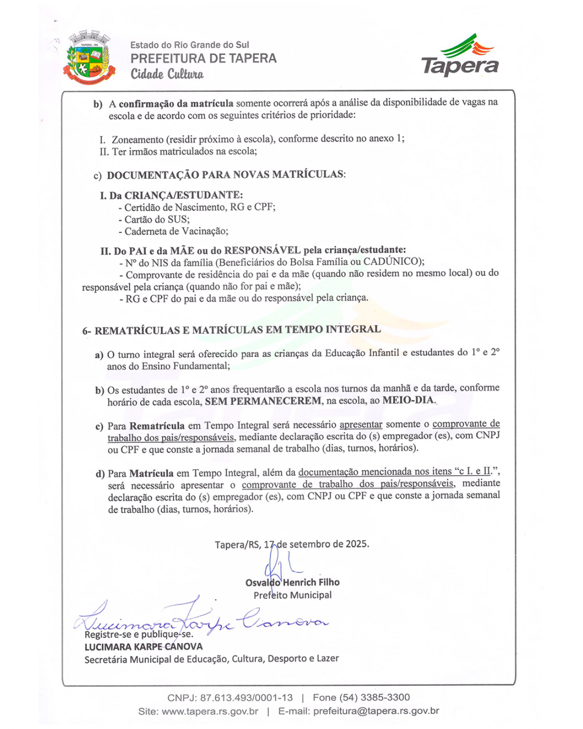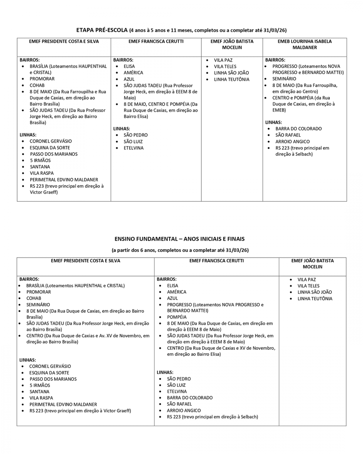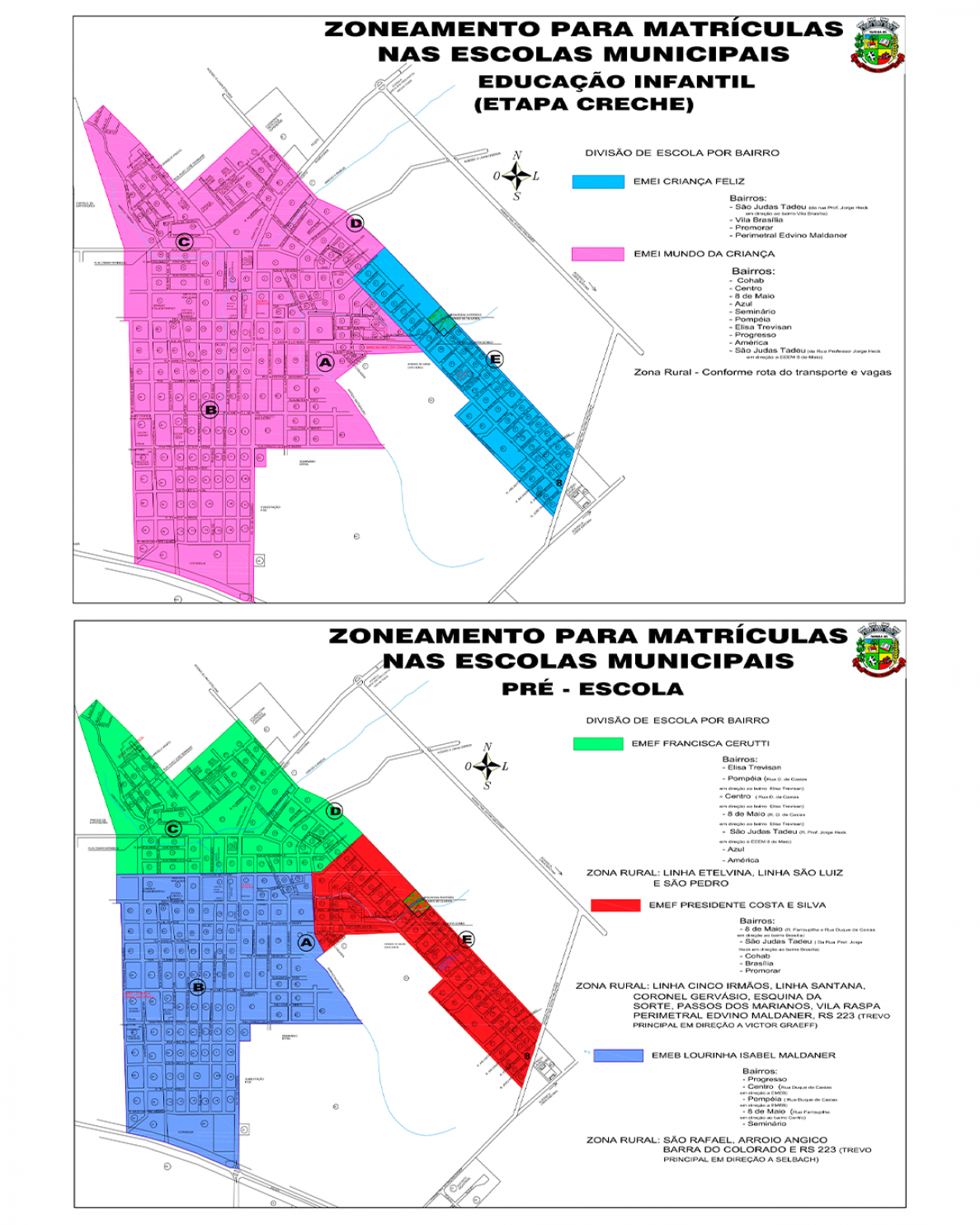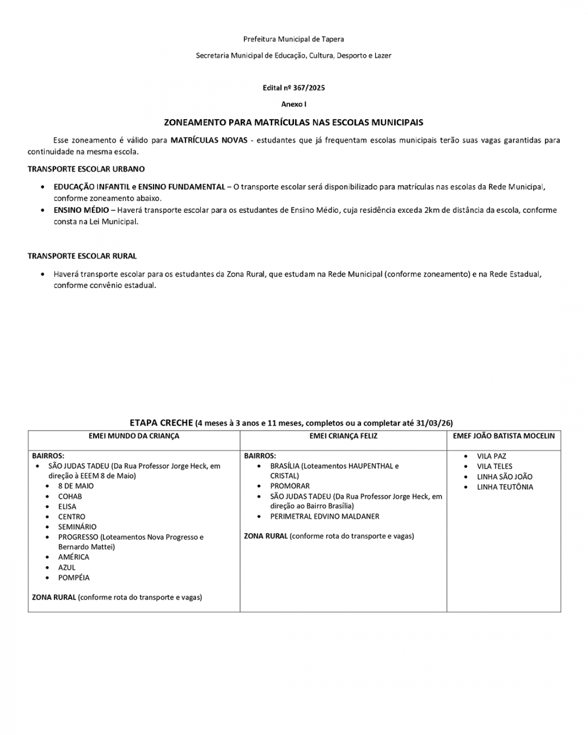 Edital de rematrículas e matrículas da Rede Municipal de Ensino, com o Anexo I atualizado e o mapa do zoneamento das escolas
