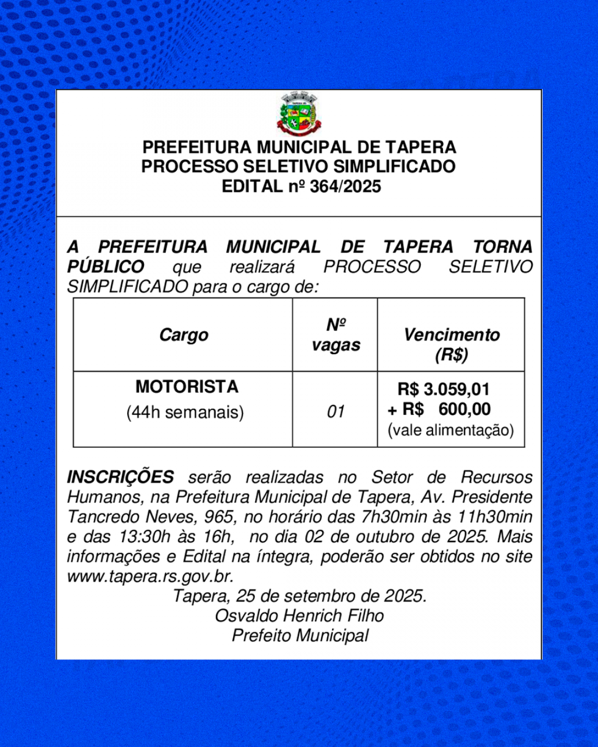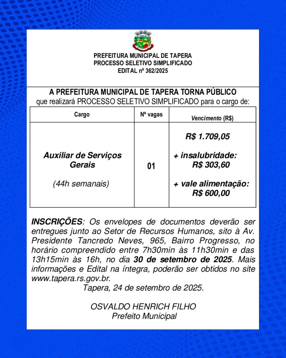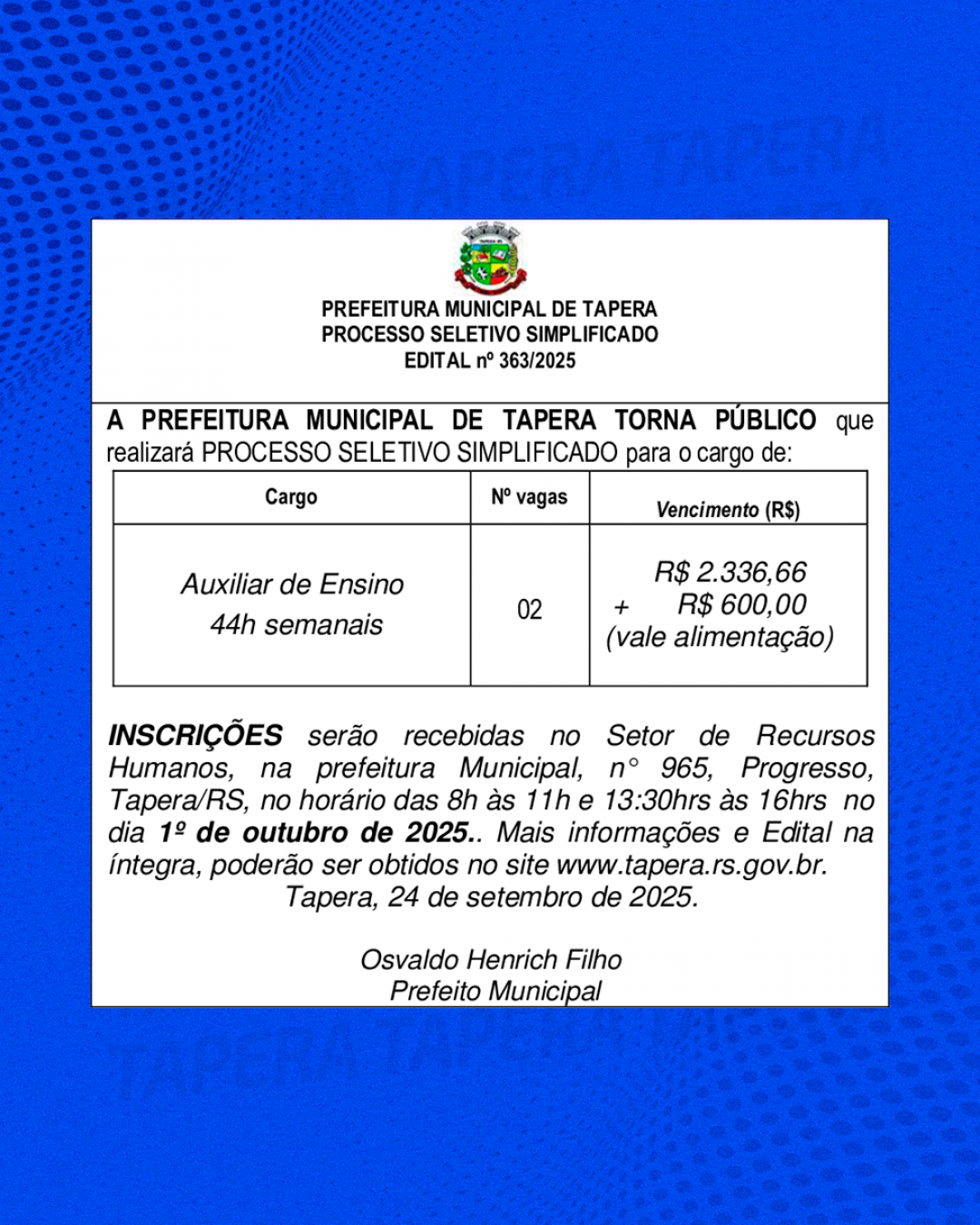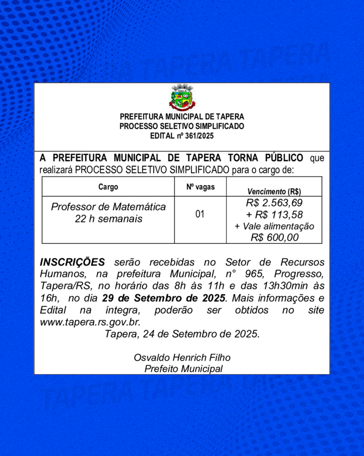 Link: https://www.tapera.rs.gov.br/pg.php?area=PROCESSOSELETIVO&ano=2025