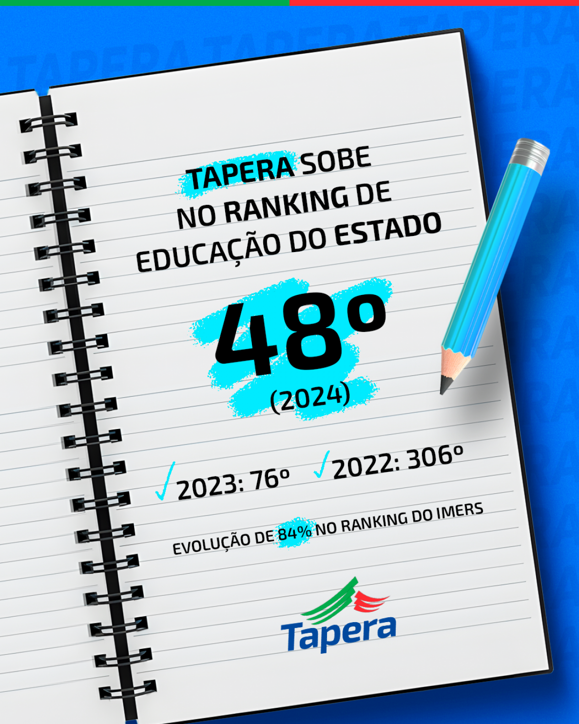 Nos últimos anos, Tapera apresentou uma evolução notável de 84% no ranking. Em 2022, o município ocupava a 306ª posição no Estado, com índice de 57,86. Em 2023, deu um salto significativo, alcançando o 76º lugar, com 73,58 pontos — uma ascensão de 230 posições no ranking. Em 2024, os resultados seguiram positivos: Tapera chegou ao 48º lugar no Estado, com índice de 75,54, crescendo mais 28 posições.