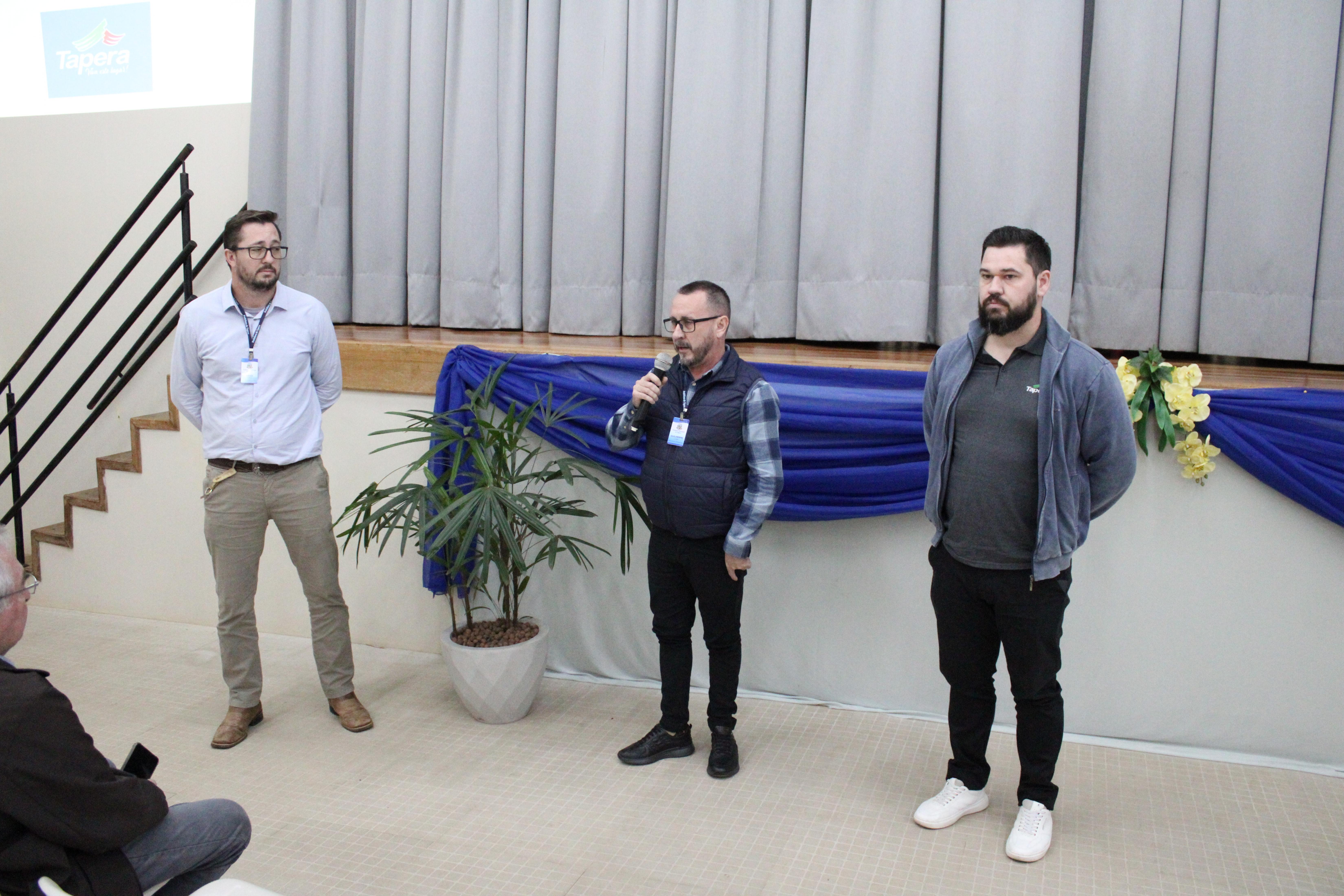O Grupo de Educação Fiscal de Tapera, representado por Guilherme Sabo, Diretor Municipal de Planejamento, Tiago Schmidt, Diretor de Agricultura e Meio Ambiente, e Joel Nascimento, Diretor do Departamento de Educação, participou do Seminário Regional em Boas Práticas de Educação Fiscal, realizado no dia 9 de outubro, em Fortaleza dos Valos-RS.