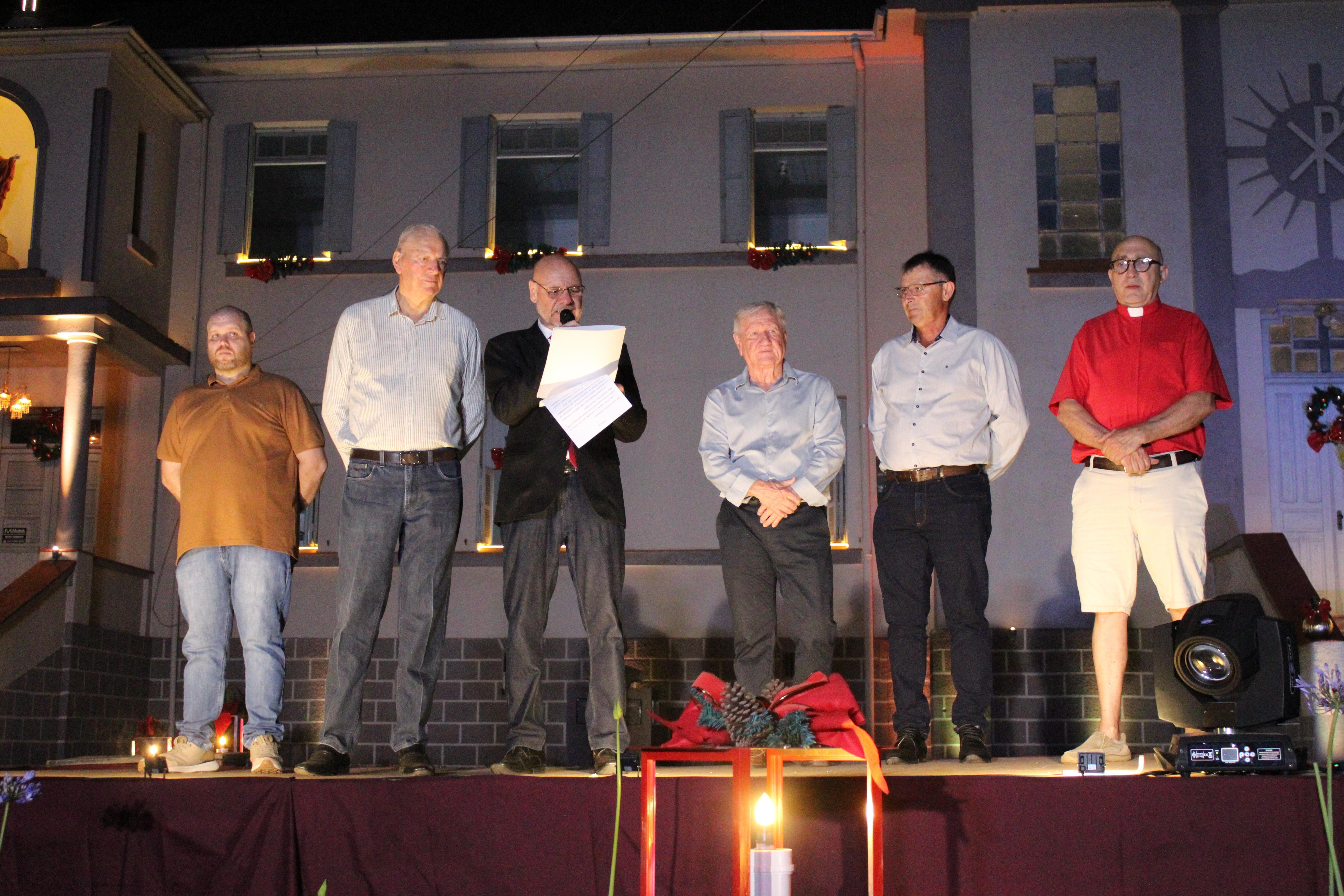 A 2ª Cantata Natalina, realizada no dia 29 de novembro no Instituto Cônego Bento, reuniu um grande público para uma noite marcada pela fé, pela emoção e pela beleza do espírito natalino. O espetáculo iniciou com um breve relato sobre a história do Instituto, preparando o público para uma apresentação que uniu cultura, tradição e sentimento. Em seguida, o palco ganhou vida com a encenação do nascimento de Jesus, conduzida de forma emocionate. Durante o espetáculo, o público foi pretigiou a apresentações do coral que cantou das janelas iluminadas do Instituto, criando um cenário único e encantador, reforçado pela iluminação especial que destacou a arquitetura do prédio. Artistas locais também fizeram parte da programação, interpretando canções que deram ainda mais brilho à noite. Após a encenação, a chegada do Papai Noel trouxe alegria às crianças e às famílias presentes. Para finalizar, uma queima de fogos iluminou o céu, encerrando a noite de forma inesquecível. A 2ª Cantata Natalina ficará marcada na memória da comunidade como um momento de celebração, fé e união, reforçando o significado do Natal e valorizando um dos patrimônios culturais mais importantes de Tapera.