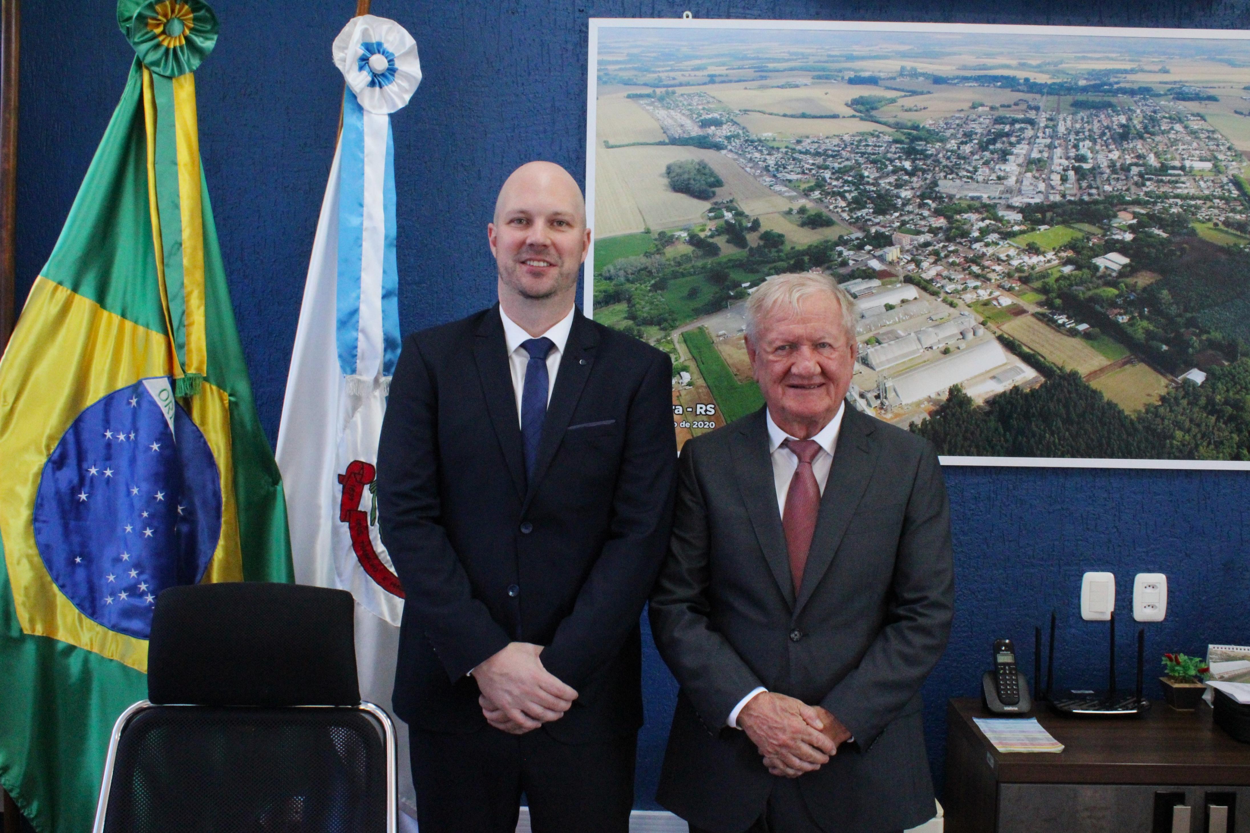 Nesta quarta-feira, 18 de fevereiro, o Prefeito Osvaldo Henrich Filho realizou a transmissão de cargo ao Vice-prefeito Marcio Paulus, que assumirá como Prefeito em Exercício no período de 19 a 28 de fevereiro.