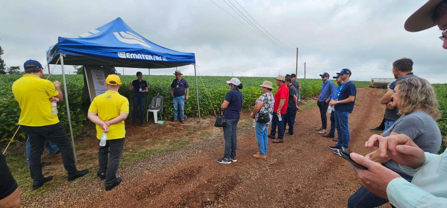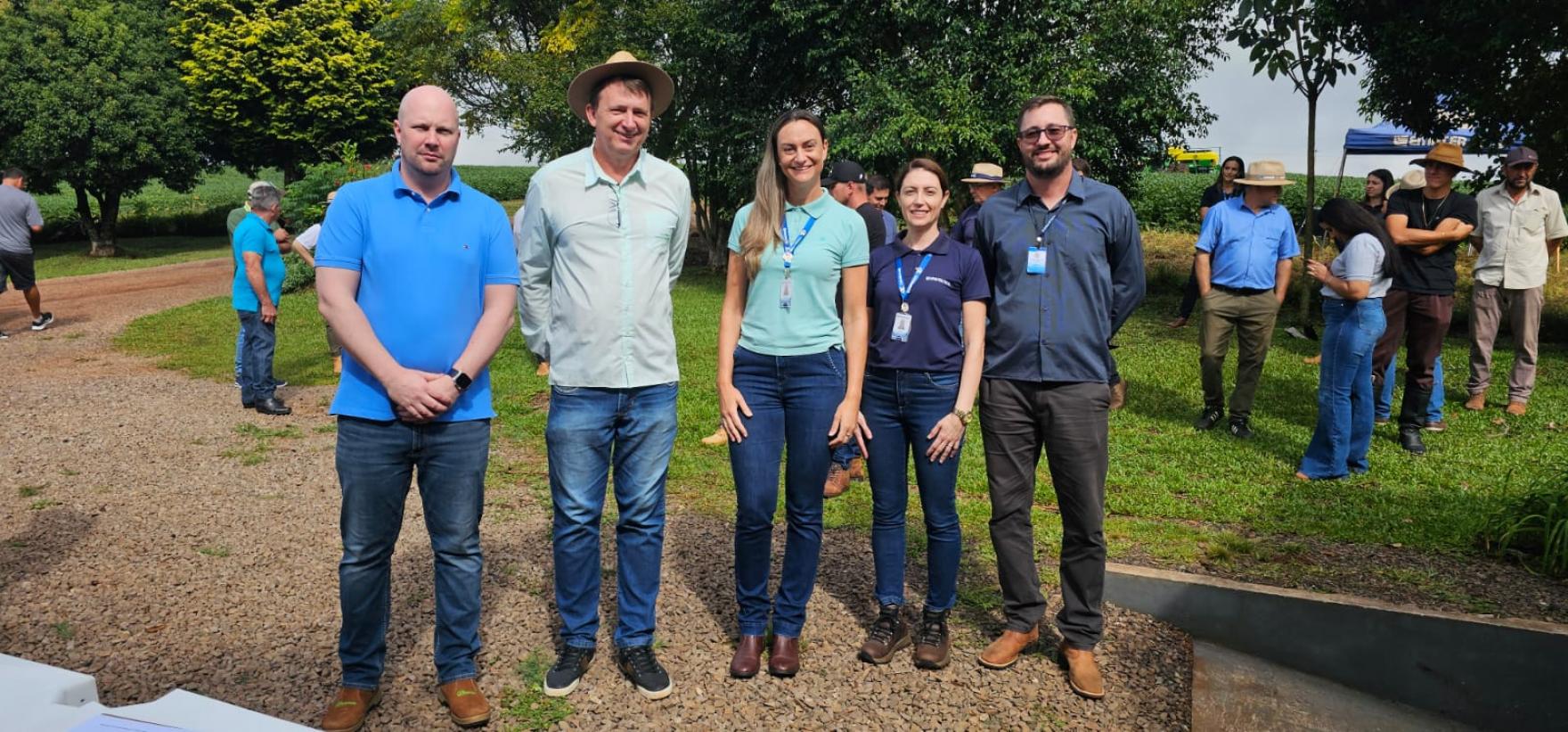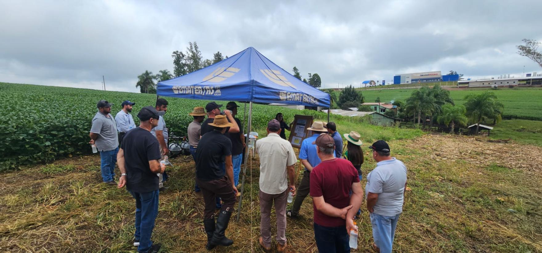 O Prefeito em Exercício, Marcio Paulus, e o Diretor de Agricultura e Meio Ambiente, Tiago Schmidt, estiveram presentes no Dia de Campo Plantio 360, iniciativa que reforça a importância da gestão integrada da propriedade rural, com foco na saúde do solo, na tecnologia de plantio e no aumento da produtividade de forma sustentável. O evento foi realizado na propriedade da Família Bervian, onde a Emater mantém, pelo segundo ano consecutivo, uma Unidade de Referência Técnica de Plantabilidade, reunindo produtores e técnicos para a troca de conhecimentos e apresentação de resultados. A programação foi organizada em estações técnicas, abordando temas fundamentais para o desenvolvimento da cultura da soja: Plantabilidade e monitoramento da ferrugem, com orientações sobre regulagem de semeadoras, definição de população e profundidade adequadas, uniformidade entre plantas e divulgação dos dados de produtividade obtidos na propriedade no ano anterior. Também foi apresentado o Programa Monitora Ferrugem, desenvolvido pela Emater em parceria com a Secretaria de Agricultura do Estado, que acompanha a dispersão de esporos da ferrugem asiática da soja e divulga mapas semanais com níveis de risco para cada região. Tecnologia de aplicação de fungicidas, destacando as condições ideais de temperatura, umidade relativa do ar e velocidade do vento para garantir uma pulverização eficiente, além da correta escolha de pontas, limpeza de filtros e regulagem dos pulverizadores. Uso, manejo e conservação do solo, com análise prática em trincheira para observar o desenvolvimento das raízes e identificar possíveis camadas compactadas, além da apresentação de dados sobre infiltração de água, densidade e porosidade do solo, informações que auxiliam nas recomendações técnicas para os próximos ciclos. Soluções em semeadura, com demonstração de tecnologias voltadas à maior precisão e uniformidade no plantio, contribuindo para o melhor desempenho das lavouras. A Administração Municipal destaca a relevância de ações como esta, que promovem conhecimento técnico, incentivam a adoção de boas práticas e fortalecem a agricultura, setor fundamental para o desenvolvimento de Tapera.