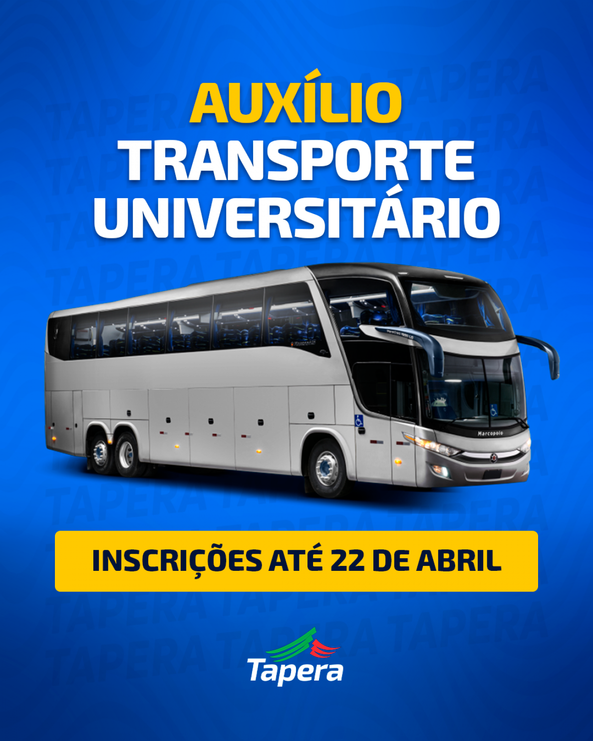 A Prefeitura de Tapera informa a abertura do Processo Seletivo para o Programa Auxílio Transporte Universitário 2026 – 1º Semestre.