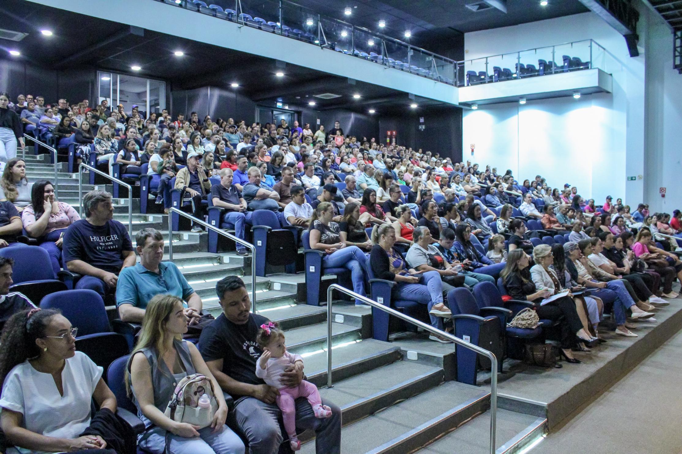 Nos dias 13 e 14 de abril, Tapera recebeu a Psicóloga e Doutora em Educação, Rosani Sgari, para abrir oficialmente a X Semana Municipal de Prevenção e Combate ao Uso e Abuso de Álcool na Adolescência e na Vida Adulta, realizada no Centro de Eventos. Na noite de segunda-feira, 13/04, a programação reuniu pais e responsáveis de estudantes da Educação Infantil ao 5º ano para a palestra "Filhos em Modo Avião: Quem Está Pilotando?". Com uma abordagem direta e reflexiva, Rosani Sgari convidou as famílias a repensarem o papel que exercem na vida dos filhos em tempos de hiperconectividade. O título da palestra já diz muito: quando a criança ou o adolescente entra em "modo avião", desconectando-se do diálogo e mergulhando nas telas, quem assume os controles? A mediação dos pais, o fortalecimento do vínculo familiar e os riscos do uso excessivo do celular foram os temas centrais da noite. Já na manhã desta terça-feira, 14/04, foi a vez dos próprios estudantes, do 5º ao 8º ano, participarem da palestra "Like, Dopamina e Riscos: O Novo Território da Adolescência". A especialista abordou de forma acessível e envolvente como o funcionamento das redes sociais explora a dopamina, o neurotransmissor ligado ao prazer e à recompensa, criando um ciclo de dependência digital que afeta diretamente a saúde mental dos jovens. Os perigos das redes sociais, o impacto do uso abusivo do celular e a importância de cultivar relações e experiências fora das telas também foram amplamente discutidos. Nesta edição, o evento ampliou seu foco: além do tema central do álcool, a saúde mental de crianças e adolescentes ganhou destaque, reconhecendo que os desafios do mundo digital são hoje tão urgentes quanto os riscos das substâncias. A programação segue no dia 15/04, com os pais e responsáveis dos estudantes do 6º ano ao 3º ano do Ensino Médio, e no dia 16/04, com os estudantes do 9º ano ao 3º ano do Ensino médio.