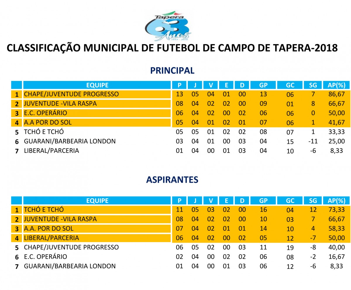Confira a classificação geral das equipes: